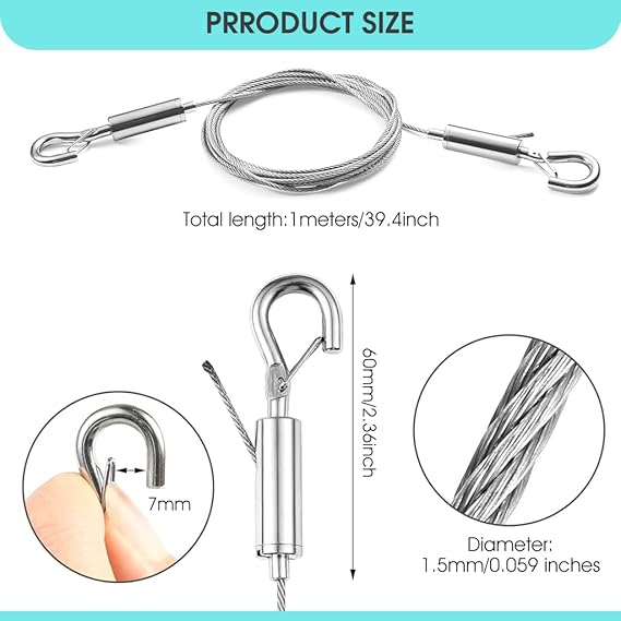 Crafted from high-quality stainless steel, this picture hanging wire offers unmatched strength and longevity. It withstands considerable weight and remains resilient over time, ensuring your cherished artwork or decorations stay securely mounted. Invest in quality that lasts.